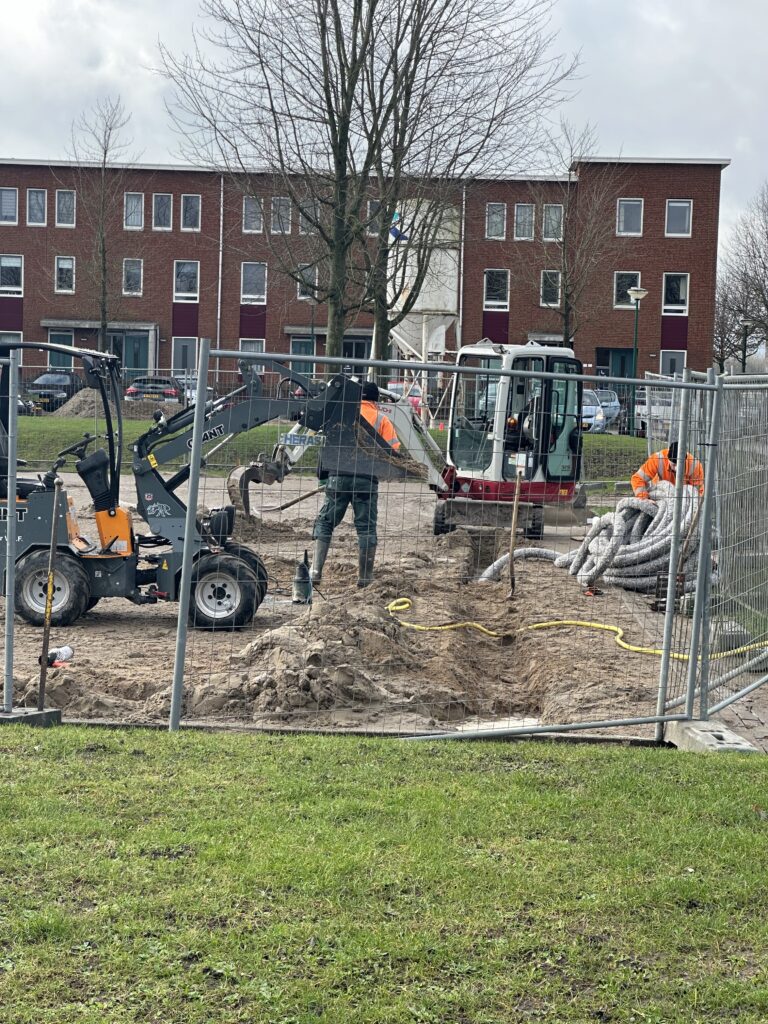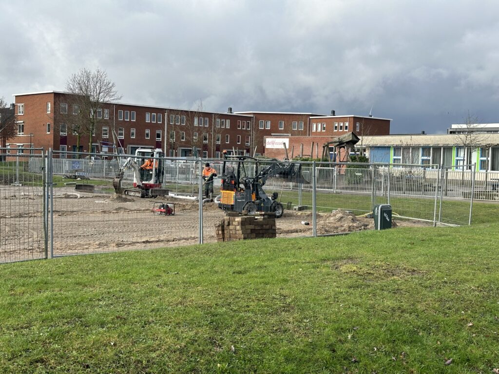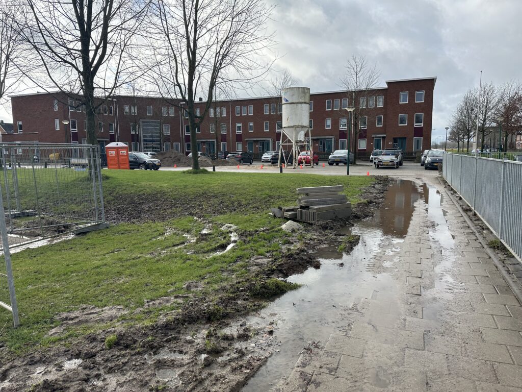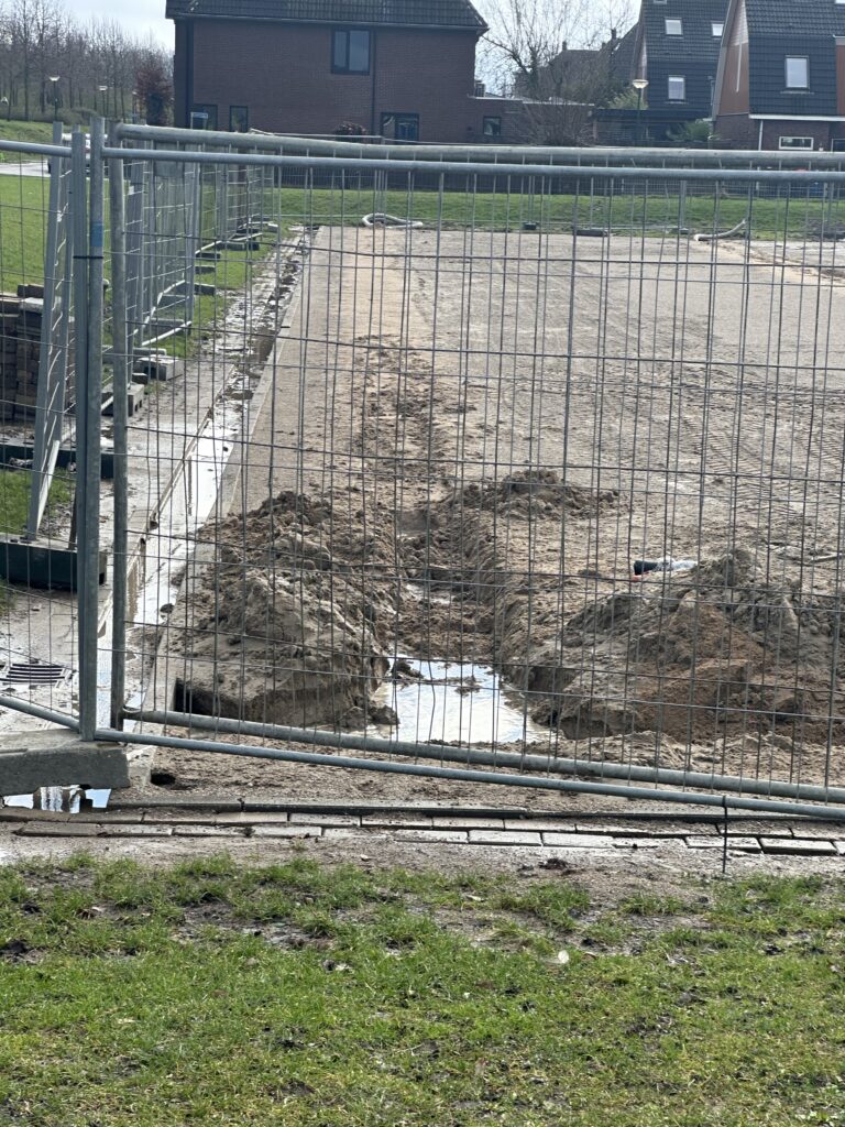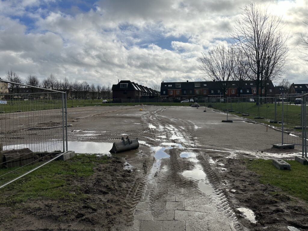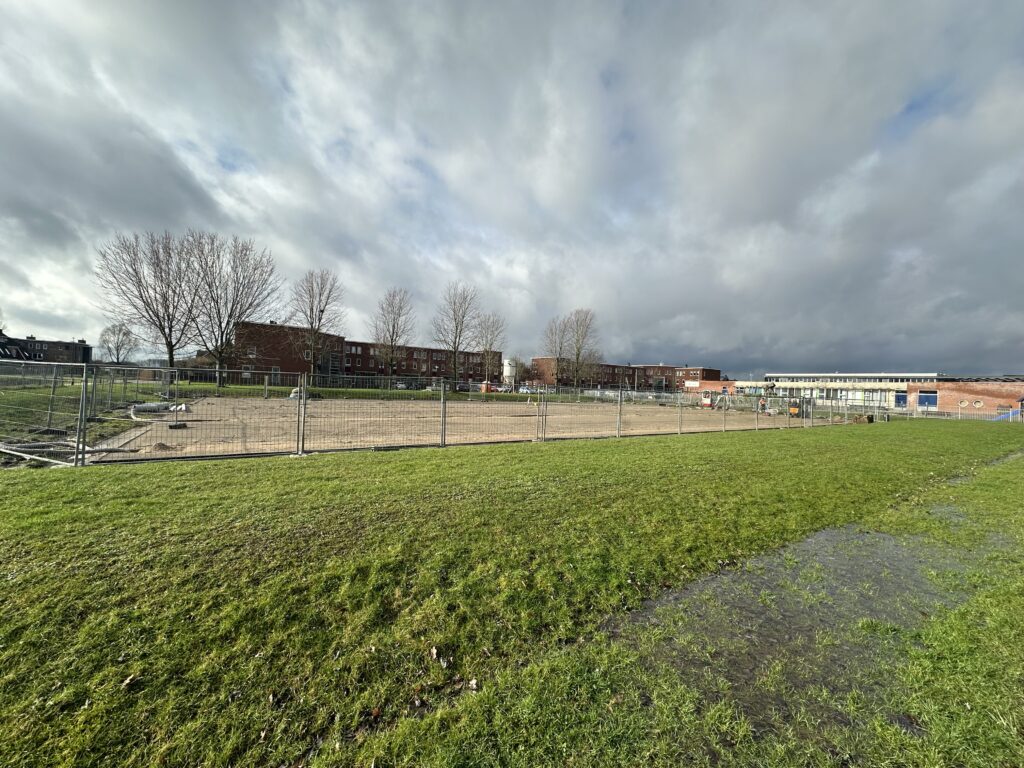 Na dat het bedrijf Grassmasters de rollengras weer hebben weggehaald lijkt het werk stil te leggen. Dit is zeker niet waar. Op de achtergrond is er hard gewerkt om in gang te zetten dat er drainage wordt aangelegd onder het kunstgrasveld waarmee het vele water sneller wordt afgevoerd en het veld snel droog zal zijn. Als u de aanleg van het kunstgrasveld volgt heeft u ook kunnen zien dat er hekken rondom het veld zijn geplaatst en er weer werkzaamheden zijn. Helaas werkt het weer nog niet mee en kunt u ook zelf zien dat het erg nat is op en rondom het aan te leggen kunstgrasveld. Wel weer mooie wolken aan de hemel bij het maken van de foto’s.