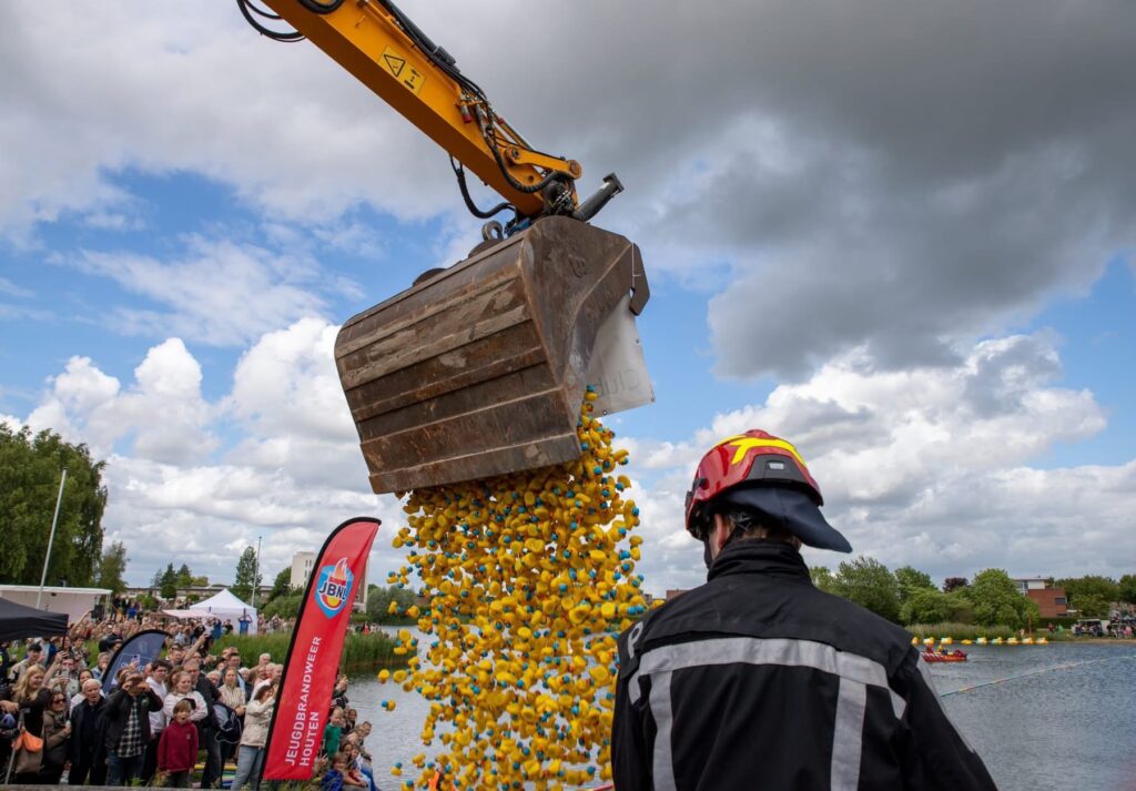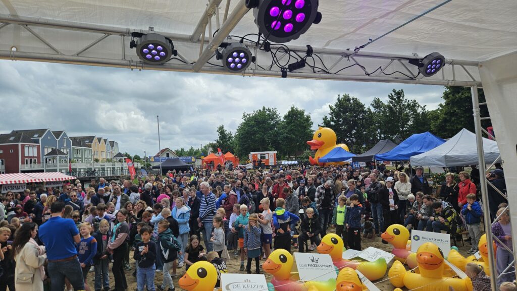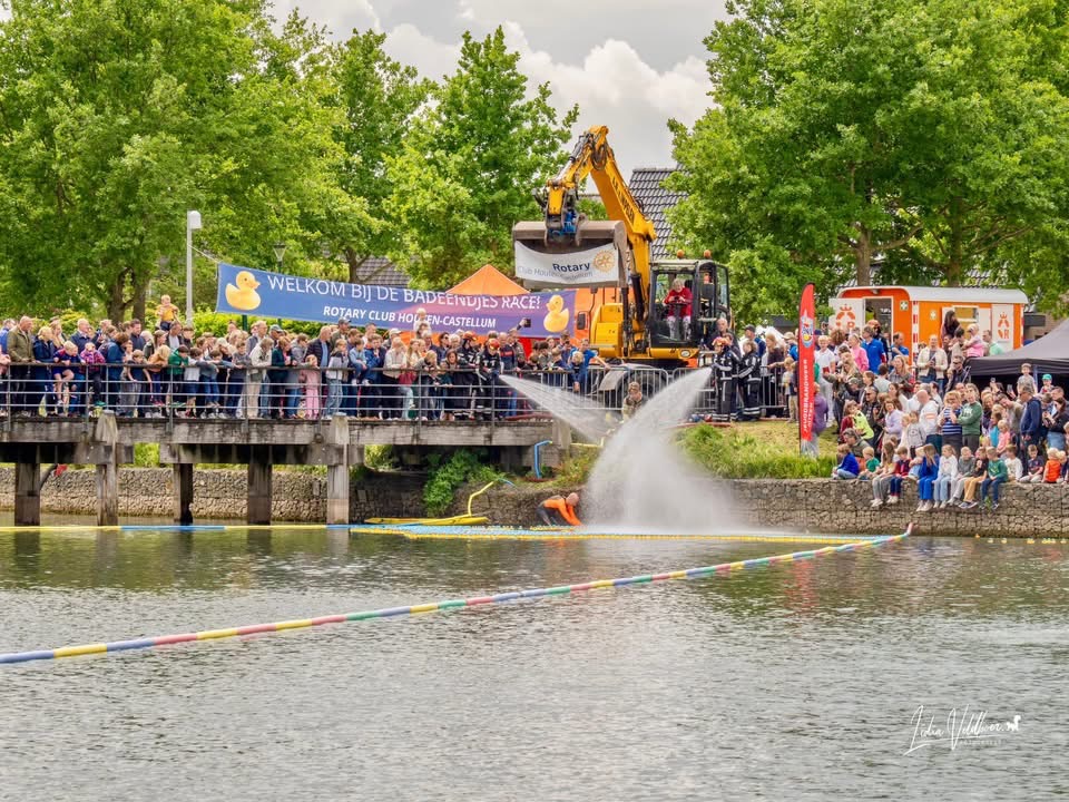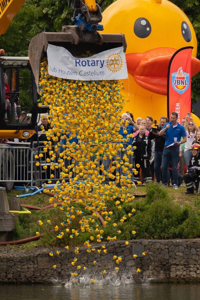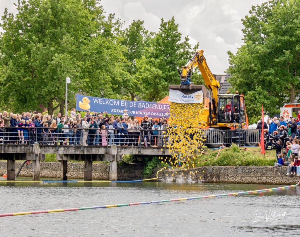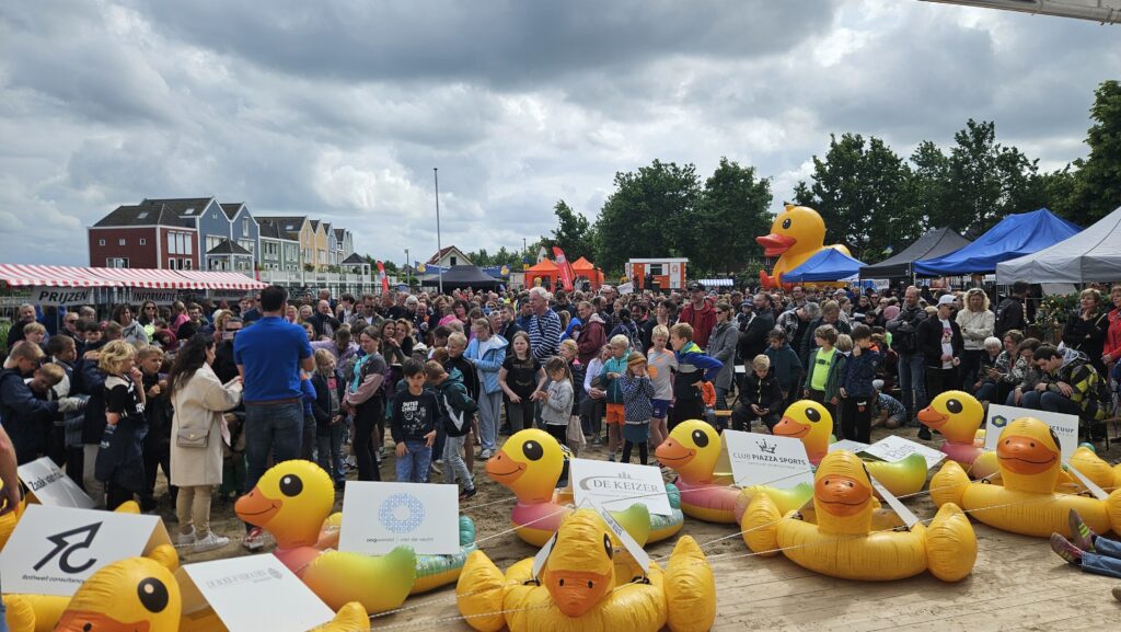 HOUTEN – Meer dan duizend mensen waren vorig jaar getuigen van de ruim vierduizend badeendjes die in het water zijn gekieperd. De Rotary Club Houten Castellum organiseerde voor het eerst een badeendjesrace op de Rietplas. Een tweede editie stond al in de startblokken, maar gaat toch niet door vanwege onverwachte omstandigheden.